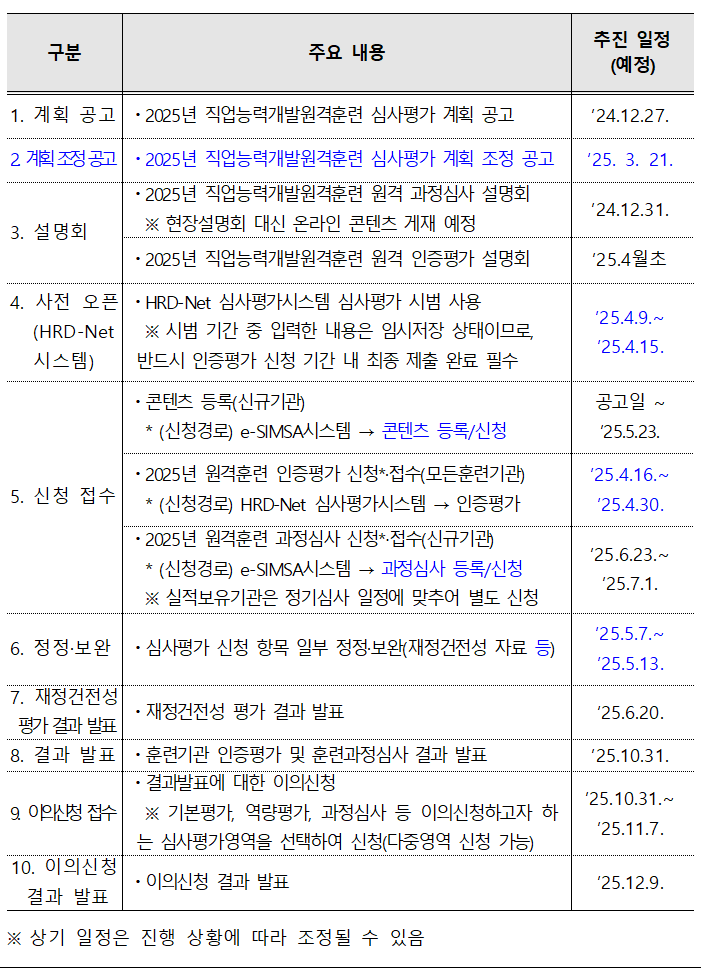 별첨 2025년 직업능력개발훈련(원격) 심사평가 계획 조정 공고 별첨자료.zip